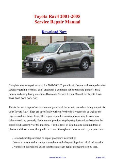 Presently you are looking regarding an Rav4 2001 2005 Service Repair Manual example of which we provide here within some kind of document formats many of these as PDF, Doc, Power Point, and in addition images of which will make it easier for you to create an Rav4 2001 2005 Service Repair Manual yourself. For a more clear look, you can open a few examples below. All the good examples about Rav4 2001 2005 Service Repair Manual on this website, we get from a number of sources so you can create a better file of your own.In case the search you obtain here does not match up what you are searching for, please utilize the lookup feature that we possess provided here. You are free to download something that we provide here, investment decision you won't cost you typically the slightest.
